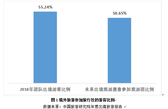 参加旅行社跟团游依然是出境游的主要方式。根据中国旅游研究院的年度出境旅游报告,2018年通过团队形式进行出境旅游的游客比例达55.24%,50.65%的受访者表示在未来的出境旅游中愿意参加旅游团。与2017年有明显下降,但境外出游参团的游客仍占多数。