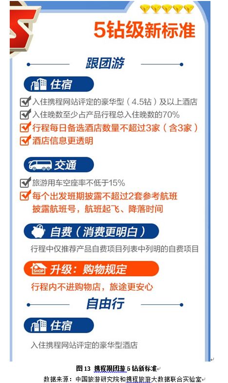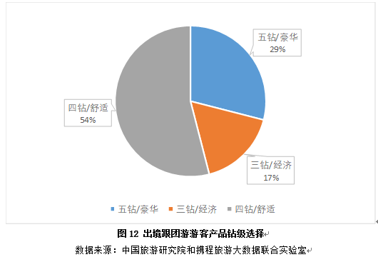 《报告》显示,选择携程4、5钻级跟团游产品的用户比例高达83%,选择3钻的比例不到20%。八成跟团游客选择高星级住宿。