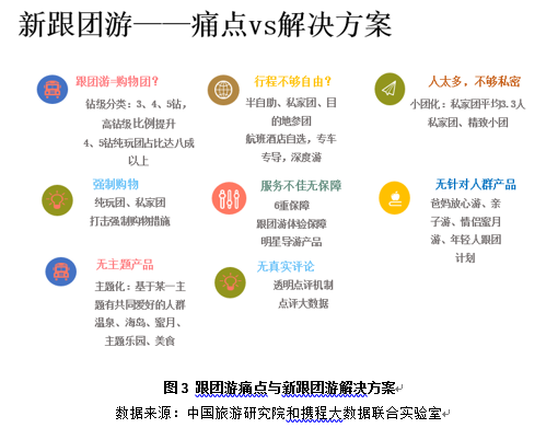 经过多年发展,跟团游正在摆脱“低品质、不合理低价、强迫游客购物”的市场形象,走向小团化、个性化、主题化、高品质的发展新阶段。目前跟团游内容和形式已变得丰富多样,逐步消除人数多、自由度差、不灵活、服务差、购物多、不能满足个性化需求等劣势。“新跟团游”的品类逐渐发展为私家团、目的地参团、半自助、5钻高端游、主题化跟团产品等。