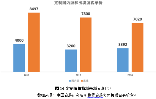 2018年携程定制旅行平台定制需求单同比增长180%。二三线城市定制游需求增速超过一线城市。从携程定制订单的大数据看,去年国内定制游人均价格在3300多元,出境游在7000元;来自二线城市的用户占了42%,超过一线城市的36%。客户在逐步年轻化,80后、90后的客户成为了主要力量。
