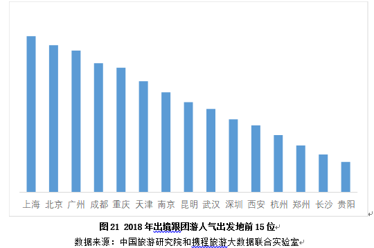 出境跟团游,哪些出发城市热情最高?《报告》显示,2018年出境跟团游出发人数最多的前十五名城市,分别是上海、北京、广州、成都、重庆、天津、南京、昆明、武汉、深圳、西安、杭州、 郑州、长沙和贵阳。