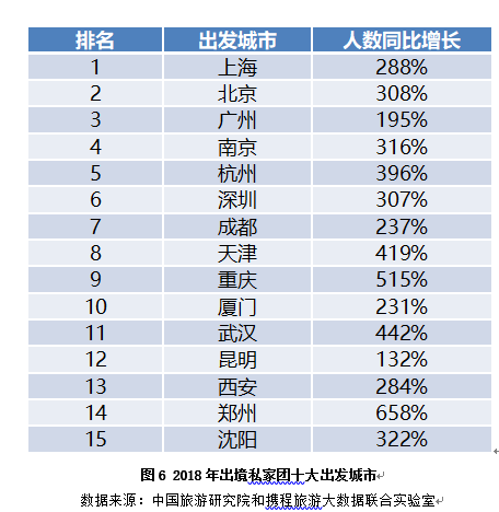随着国人旅游消费观念的转变,近两年私家团在二三线城市逐渐流行开来。《报告》显示,郑州、重庆、厦门、天津等“新一线”城市,报名私家团的人数同比增长已经达到400%以上,郑州增幅最高,同比增长658%。