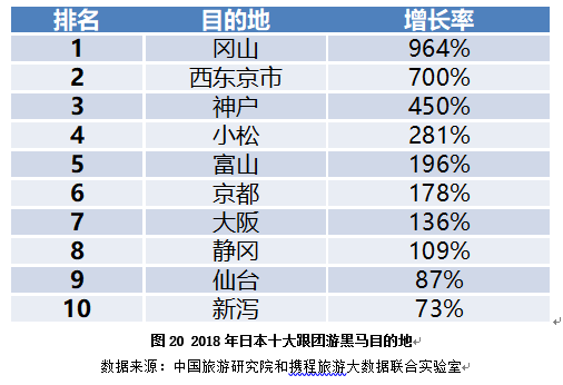 深度旅游是新跟团游的另一大重要趋势。如今,越来越多国家的小众目的地开始被发现,热度不断提升。以日本为例,《报告》显示,2019年上半年日本十大跟团游黑马目的地城市依次是冈山、西东京市、神户、小松、富山、京都、大阪、静冈、仙台、新泻,除了游客熟知的神户、京都、大阪等城市之外,其他都属于小众城市。