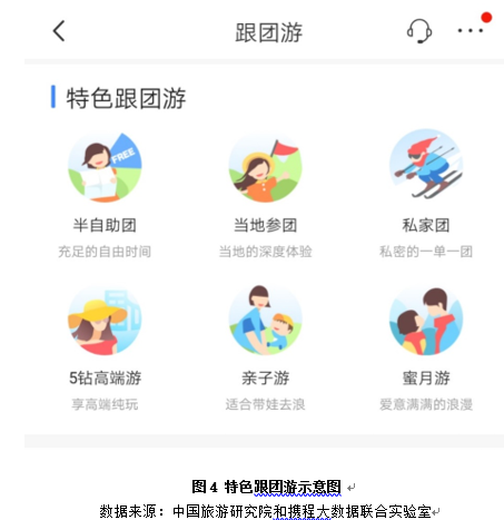 与行程固定化,旅游节奏紧张的普通跟团产品相比,越来越多的游客选择一种自由度较高的跟团方式——半自助旅游。在携程旅游平台,目前自由旅行时间超过一天的跟团类型定义为半自助产品。选择半自助的游客既可以享受旅行社在当地开发的旅游资源优势(例如优惠的酒店价格、团队景区门票价格,当地交通资源等)同时可以根据自己的需求,在自由行的时间里安排体验类、碎片化的活动。