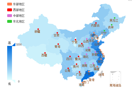从全国旅行社分布来看,东部地区、西部地区、中部地区及东北地区分别占全国旅行社总量的51%、23%、18%和8%。旅行社数量在2500家以上的有5个地区,分别为广东、北京、江苏、浙江和山东,数量最多的广东为3108家。天津、新疆、海南、西藏、新疆兵团、宁夏6个地区旅行社数量少于500家,最少的宁夏为161家。旅行社数量在500-1000家的有10个地区,1000-1500家的有9个地区,1500-2000家的有2个地区(见图1)。